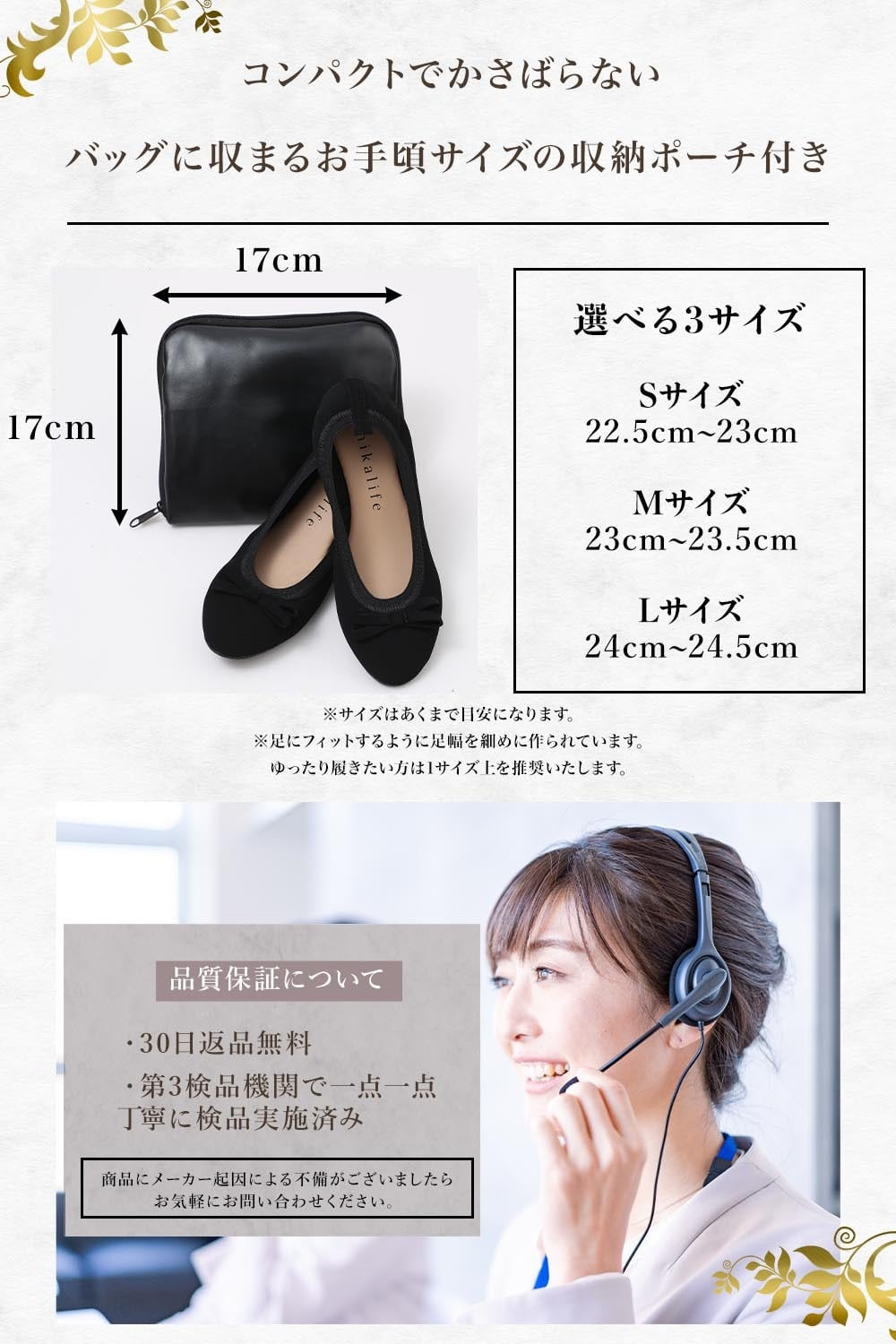 ✅【 お手頃サイズの収納ポーチ 】小さめのバッグにもすっぽり収まる収納ポーチ付き。ポーチ収納時でも20㎝×17㎝×4㎝とコンパクトなので、小さめのバッグにもきれいに収まります。