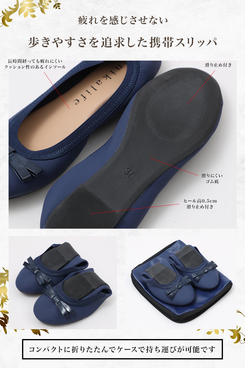 ✅【 こもった臭いも気にならない 】携帯スリッパ、収納ポーチともに丸洗いできるので、こもった臭いに悩まされることはありません。